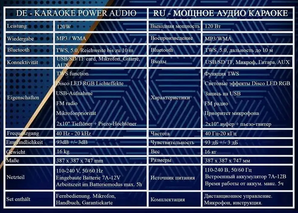 | Додатково | Караоке-функція, еквалайзер |