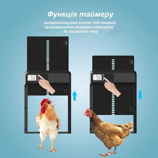 Автоматичні двері для курятника з ЖК-дисплеєм і таймером Захист курей від хижаків