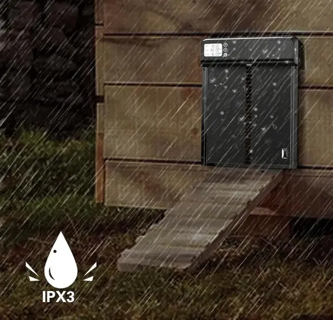 Ці автоматичні двері для курятника — ідеальне рішення для безпеки та комфорту вашої домашньої птиці. Завдяки вбудованому ЖК-дисплею, таймеру та сенсору освітлення, дверцята відкриваються і закриваються автоматично — у встановлений час або відповідно до сходу/заходу сонця.