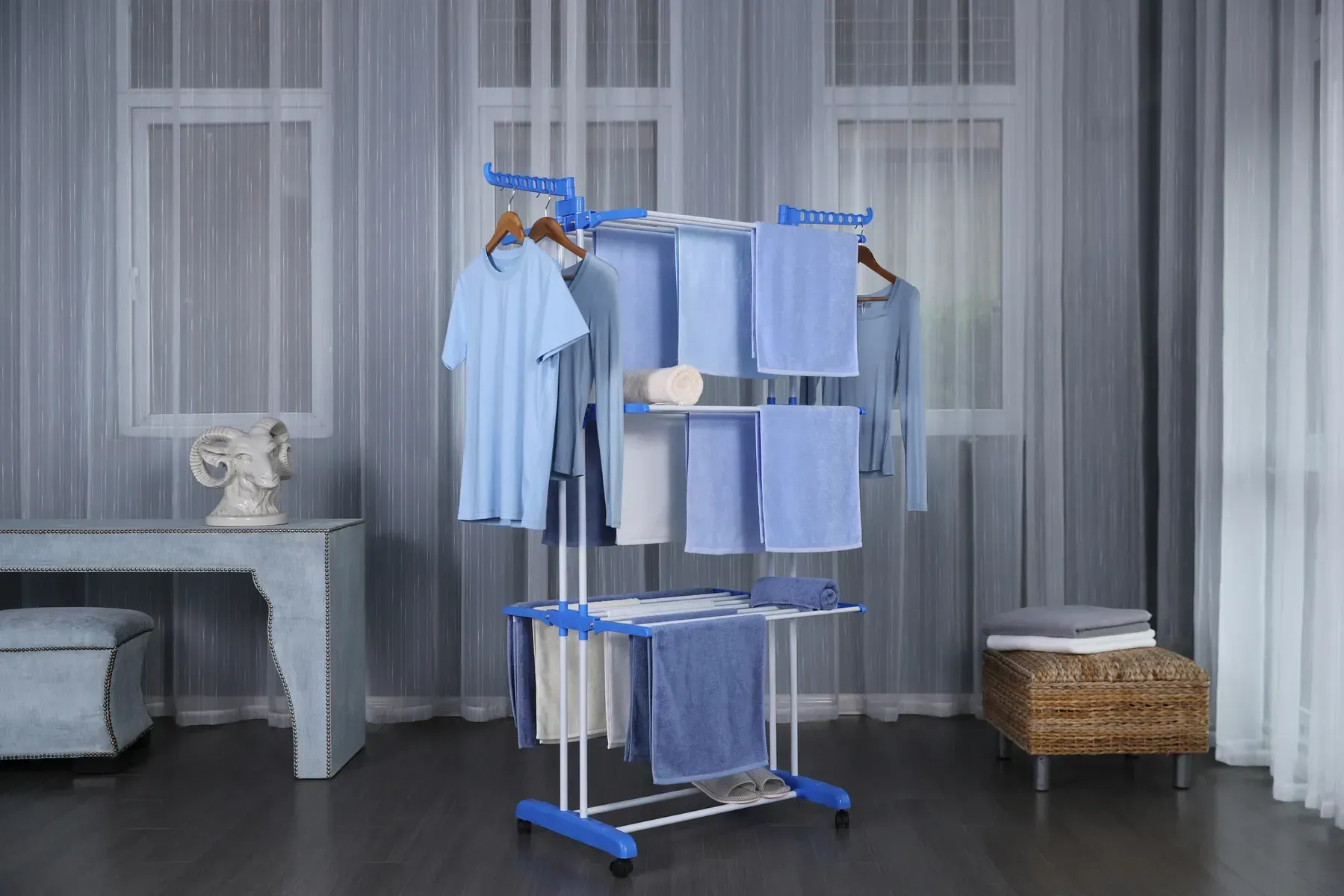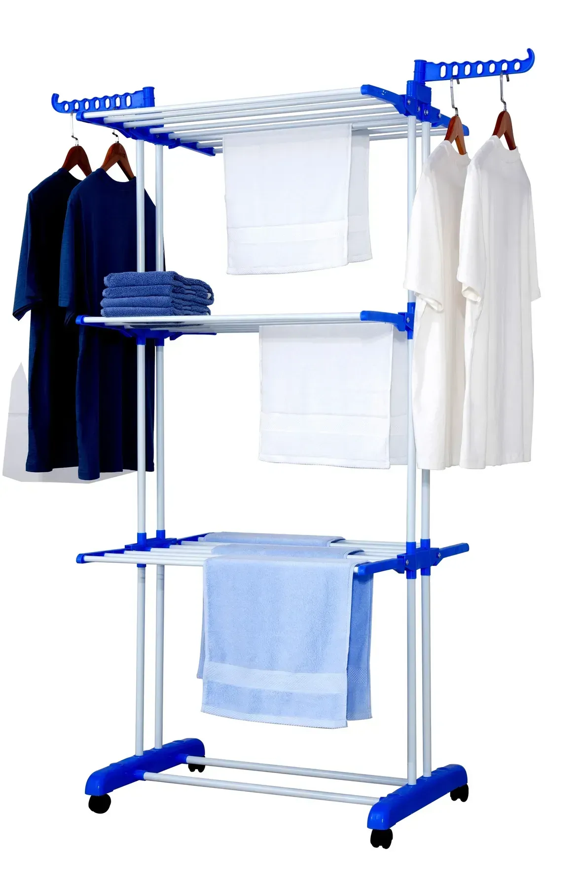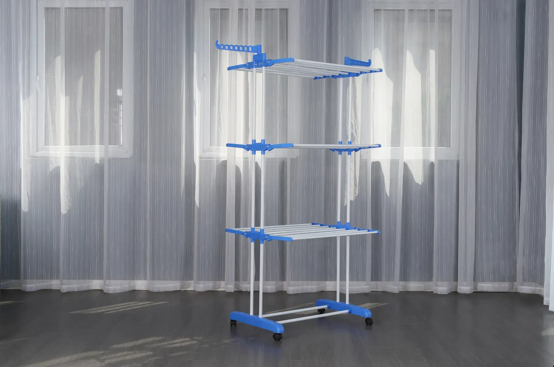 Три яруси, мобільна конструкція на коліщатах, навантаження до 40 кг – ця сушарка створена для зручності у кожному домі. Підійде як для великої родини, так і для квартири-студії. Всі речі на своєму місці, простір чистий, а білизна сохне швидко й ефективно.