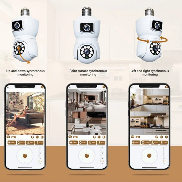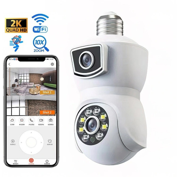 Інноваційна WiFi-камера V09 має форму звичайної лампочки, що легко вкручується у стандартний патрон Е27. Оснащена двома камерами для панорамного спостереження, підтримує двосторонній аудіозв’язок, нічне бачення, виявлення руху та віддалене керування через додаток на смартфоні.
