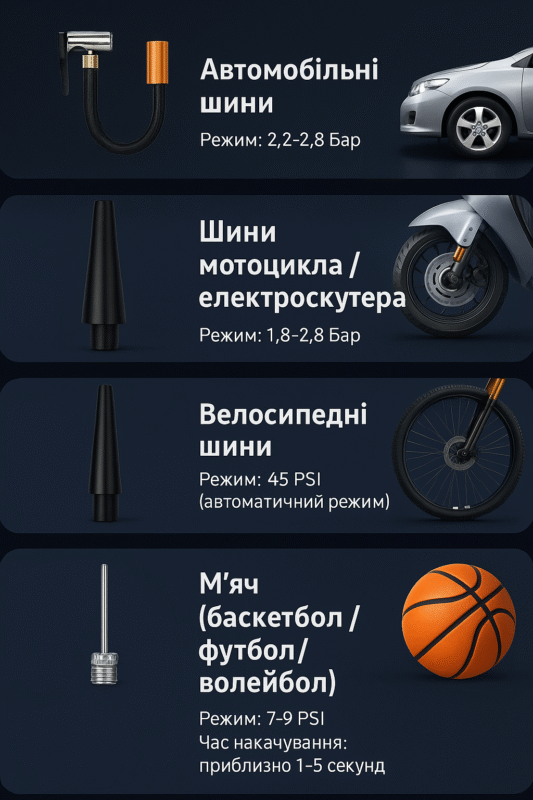 🚗 Насадки для авто, м’ячів, надувних виробів