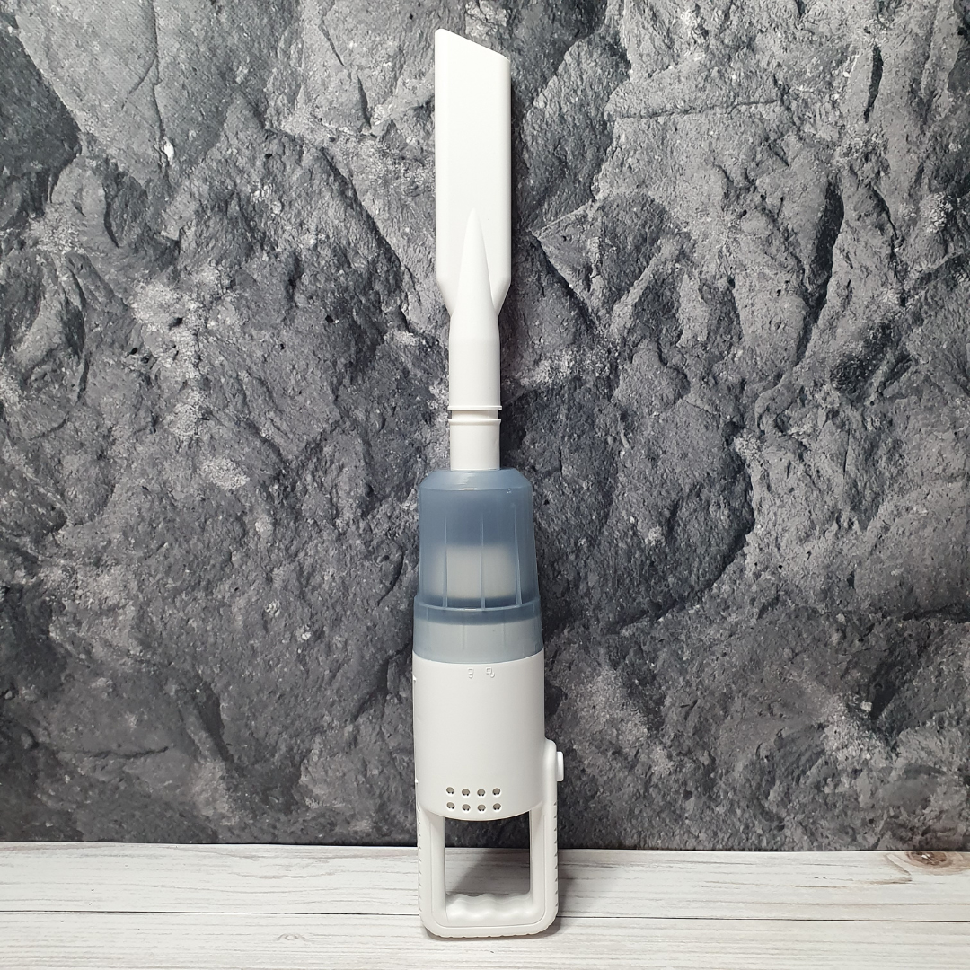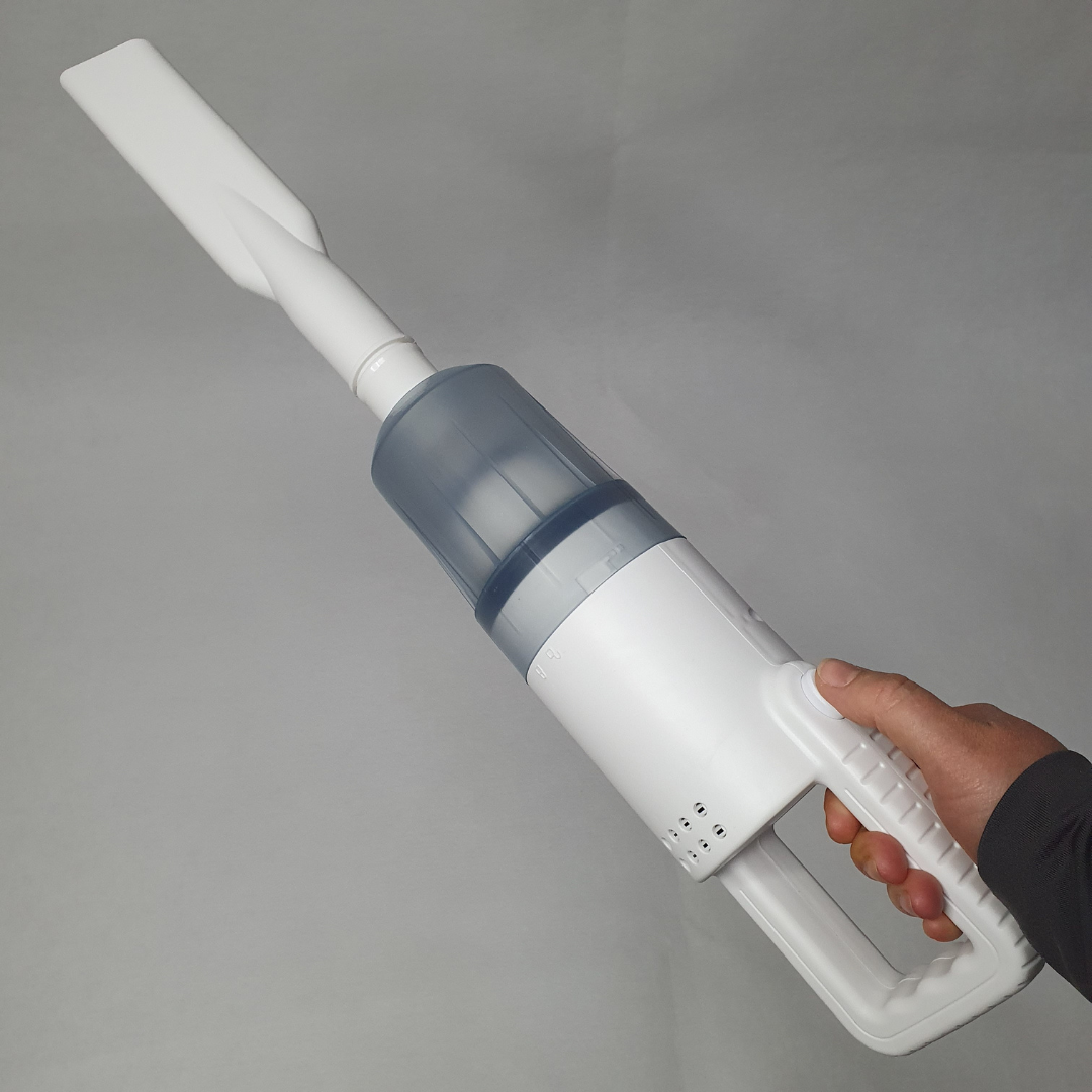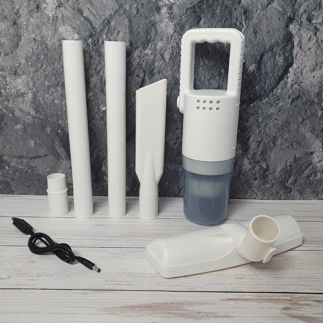 Легкий, ергономічний корпус, кілька насадок у комплекті, потужне всмоктування — все для швидкого та комфортного прибирання пилу, крихт, волосся, шерсті тварин та навіть дрібного сміття в салоні авто чи важкодоступних місцях.