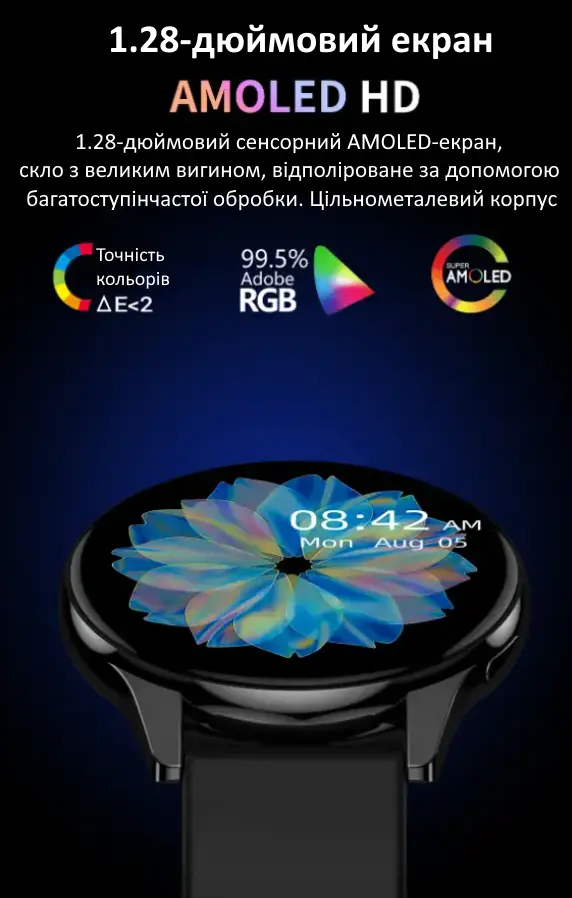 Елегантний і функціональний смарт-годинник із тонким корпусом, спортивним дизайном та розширеними функціями моніторингу здоров’я і активності!