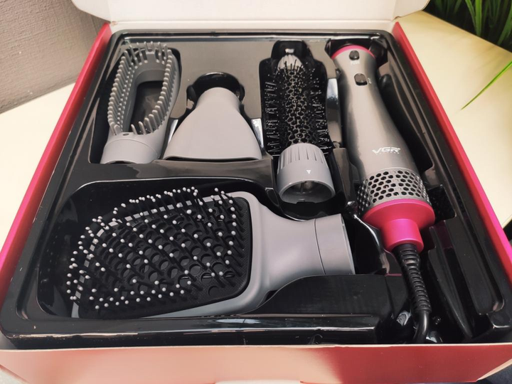 Фен-щітка VGR V-408 — це поєднання фена, щітки та стайлера в одному пристрої. Завдяки ергономічній формі, потужному обдуву і турботливому керамічному покриттю, вона забезпечує безпечне сушіння та легку укладку волосся навіть у домашніх умовах.