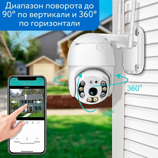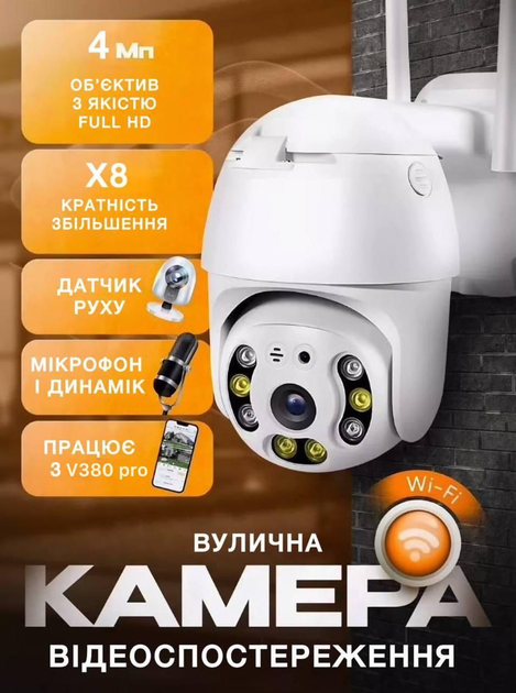 Смарт-камера для дому, офісу чи вулиці з поворотом 360°, Wi-Fi та підтримкою додатку.