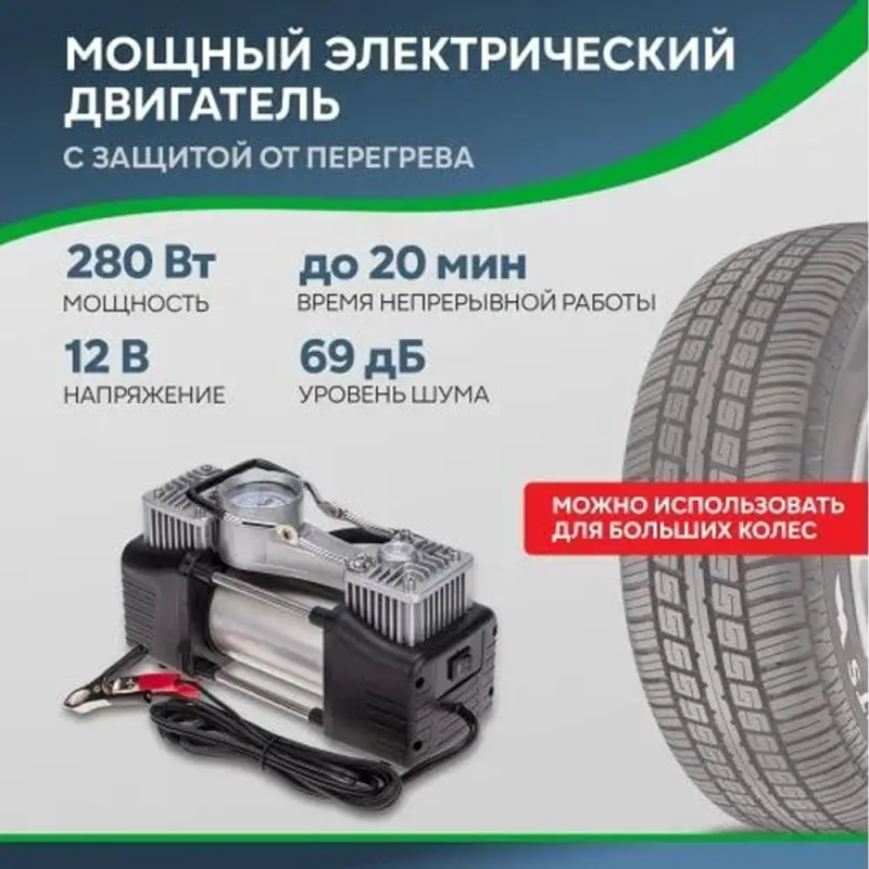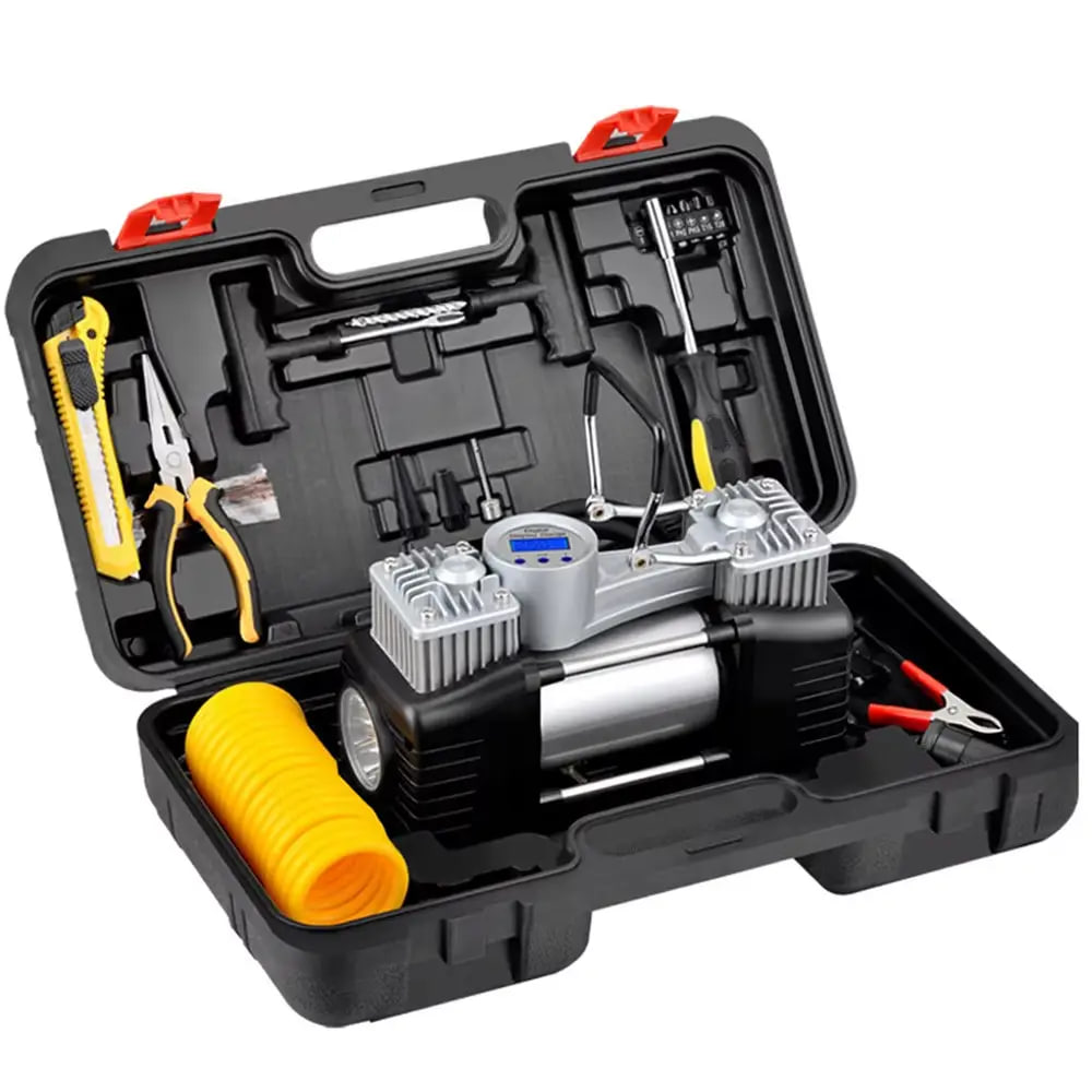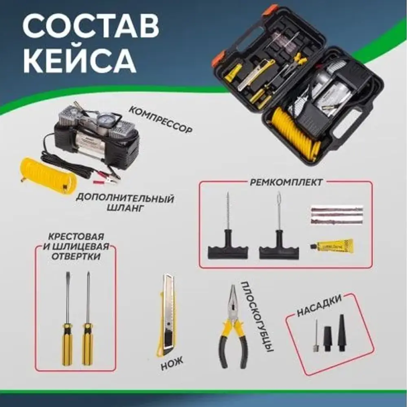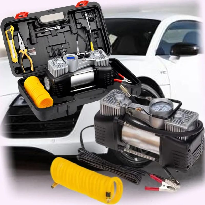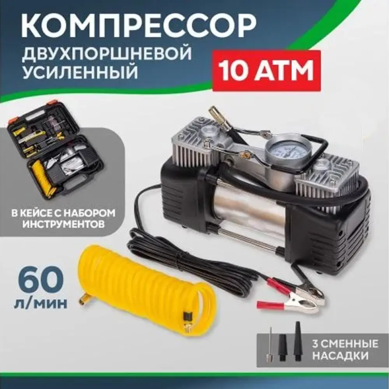 Компресор автомобільний двопоршневий (85л/мин; 10Атм; 18А) у пластиковому кейсі + кручений шланг