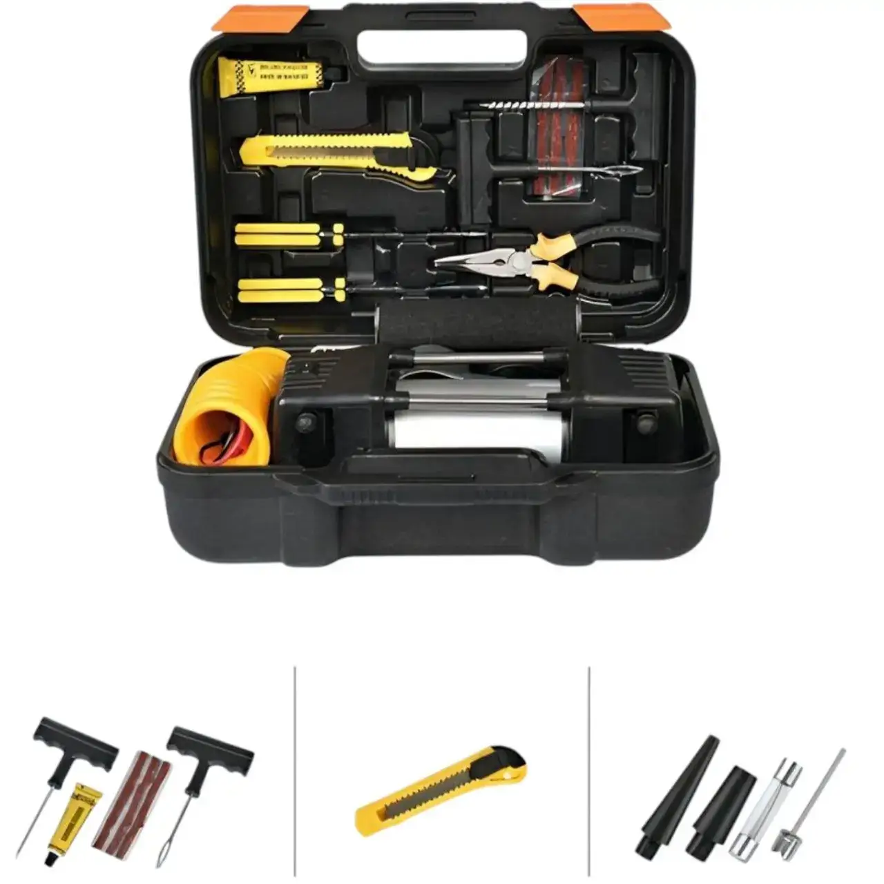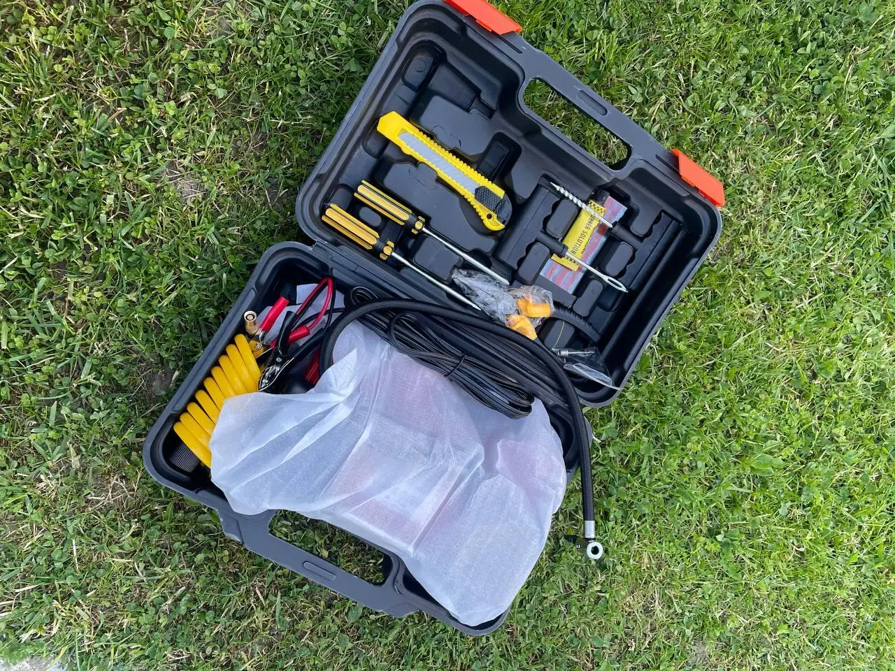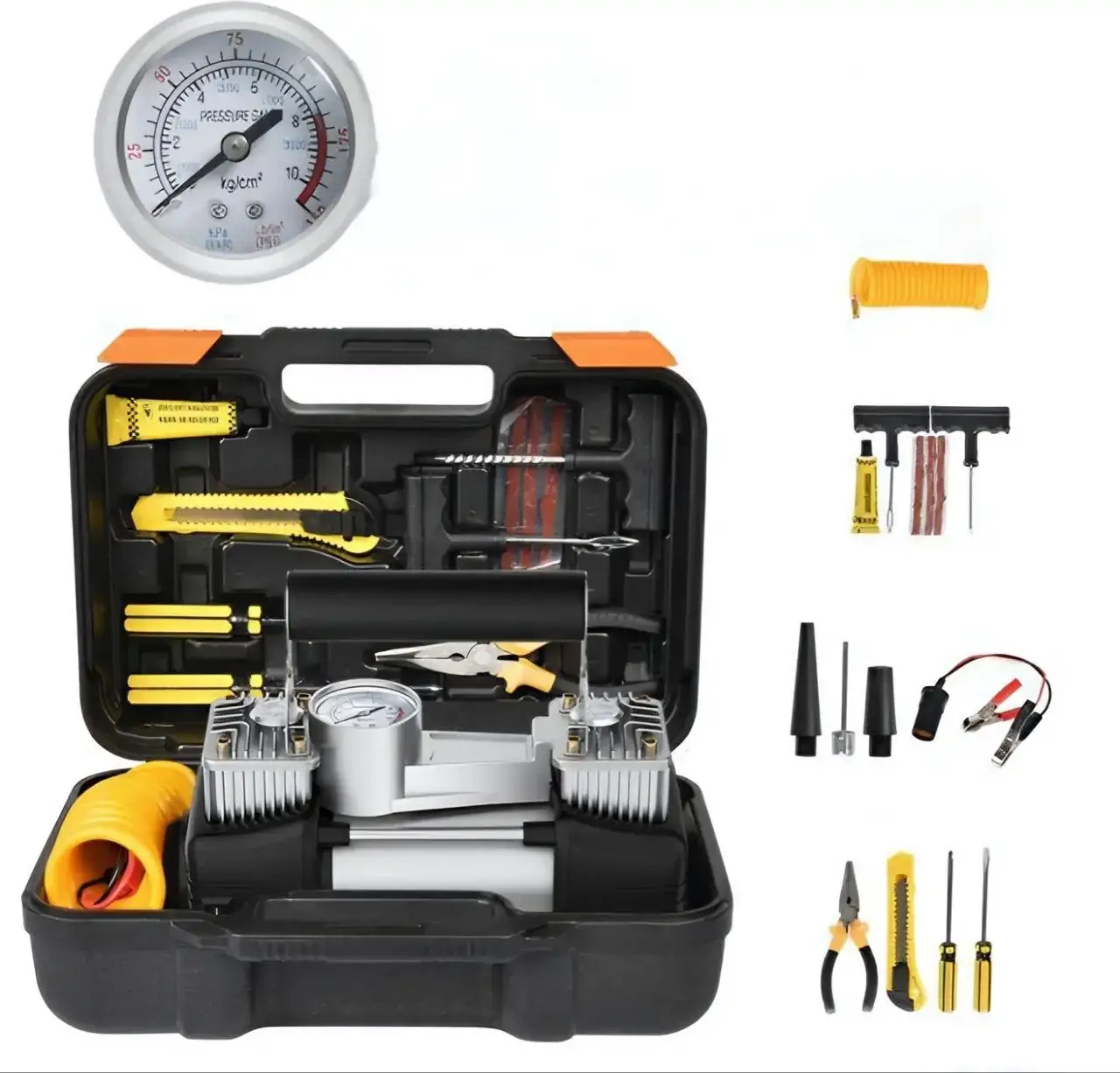 Компресор автомобільний двопоршневий (85л/мин; 10Атм; 18А) у пластиковому кейсі + кручений шланг