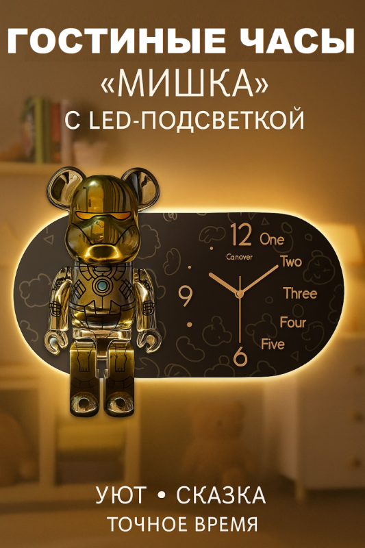 Оригінальний настінний годинник у вигляді овальної фігури ведмедика з яскравою LED-підсвіткою — це не тільки стильний аксесуар для дому, а й унікальний декор для дитячої кімнати, студії або сучасного інтер’єру. LED-підсвітка додає затишку, а безшумний кварцовий механізм не заважає сну.