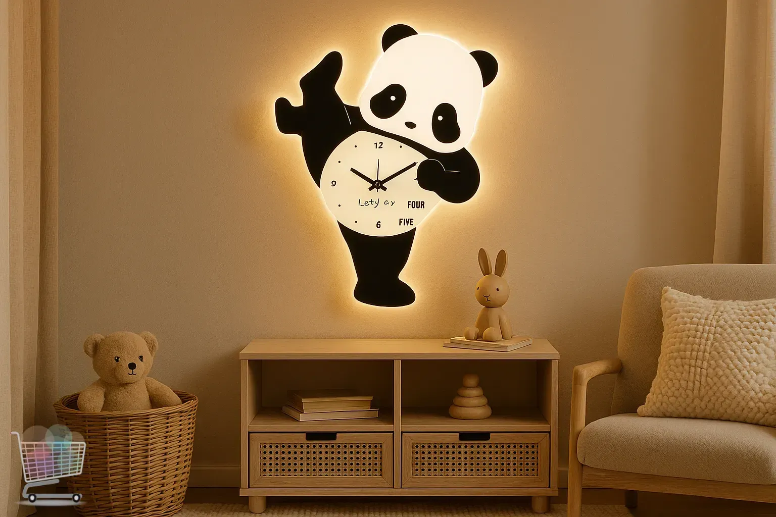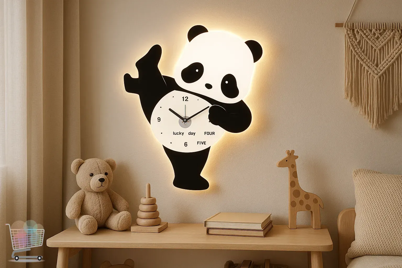 Оригінальний годинник із LED-підсвіткою у формі милої панди стане яскравим акцентом у вашому інтер’єрі. Ідеально підходить для дитячої кімнати, вітальні, студії чи подарунку. Поєднує стиль, функціональність і позитивні емоції.