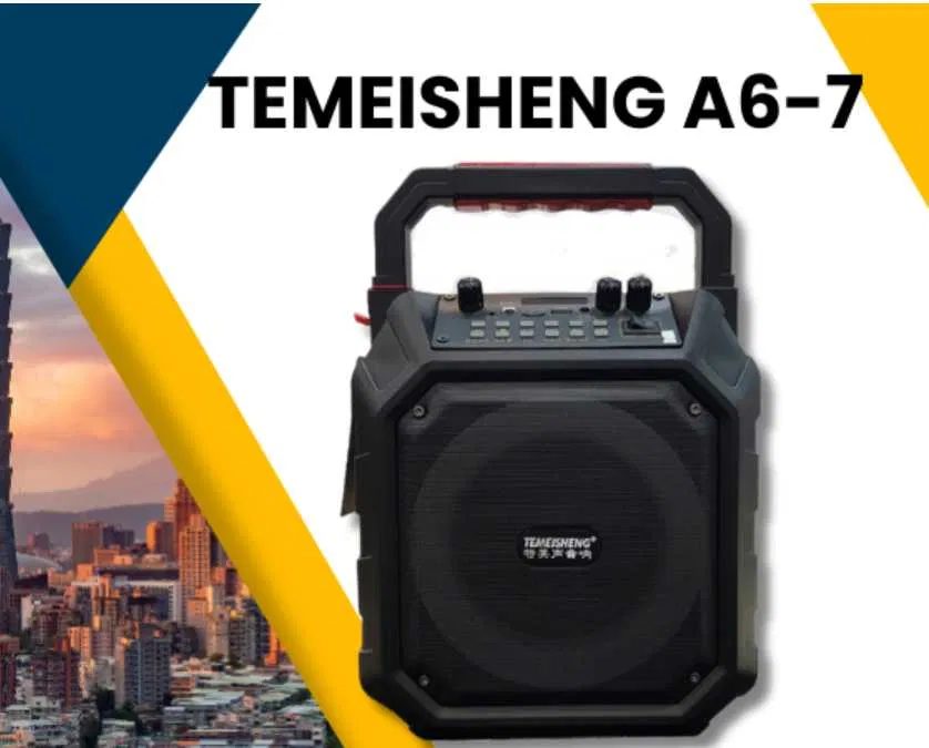 Temeisheng A6-7 — це компактна і зручна Bluetooth колонка з гарним об’ємним звуком, підходить для дому, відпочинку на природі, презентацій та караоке. Має зручне керування, яскраву LED-підсвітку та підтримку FM-радіо.