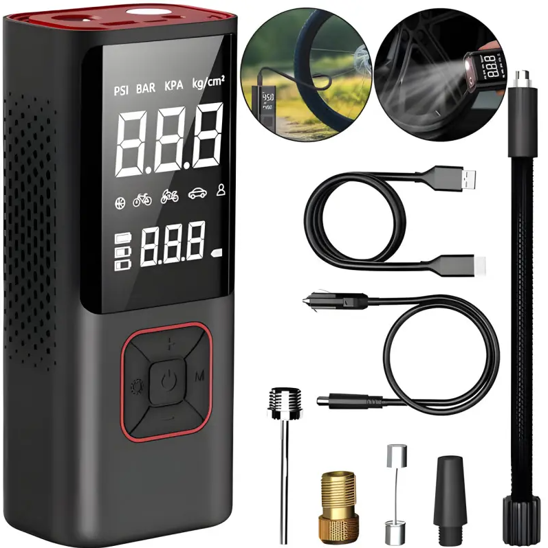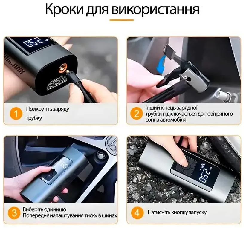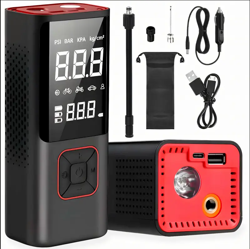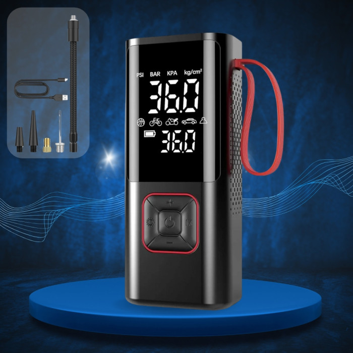 Автокомпресор – це надійний та універсальний пристрій, призначений для накачування шин та підтримання правильного тиску в автомобільних та мотоциклетних шинах. Завдяки акумулятору, ви можете використовувати компресор скрізь, де вам потрібно, без необхідності підключення до мережі. LED дісплей відображає поточний тиск у шинах, що дозволяє вам контролювати та підтримувати правильний тиск з високою точністю.