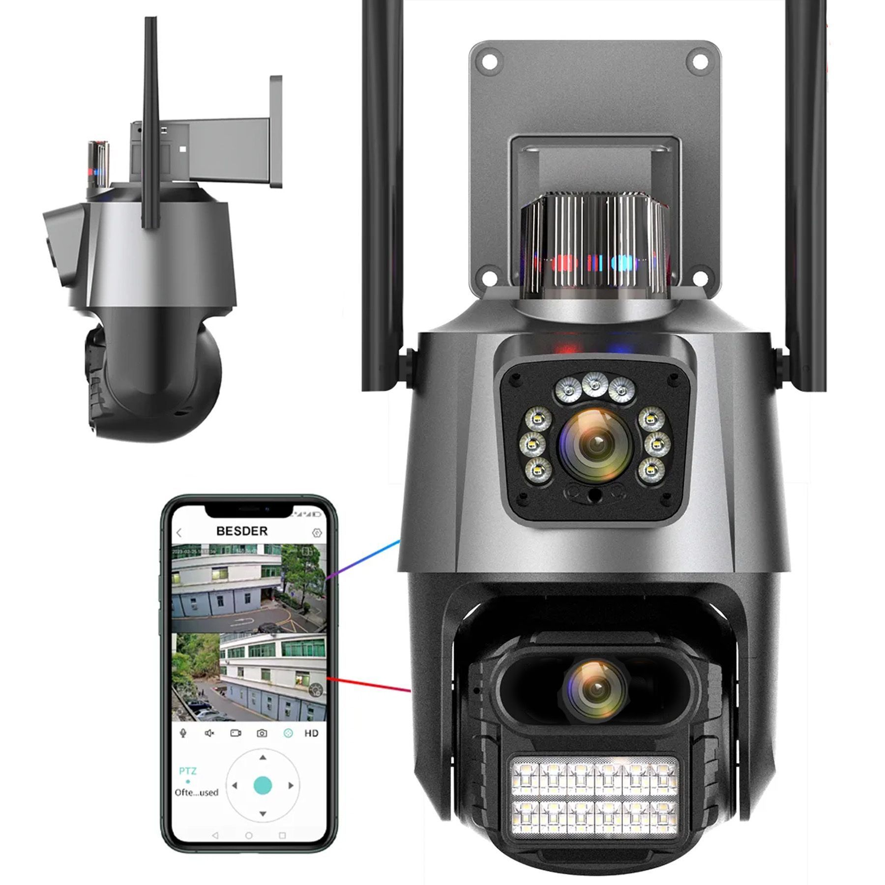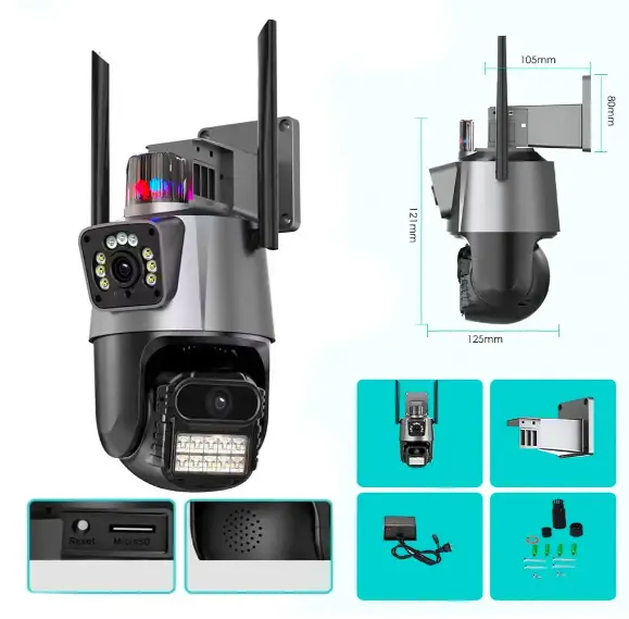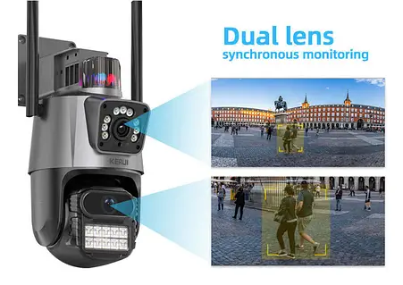 Поворотна вулична WiFi-камера з сиреною та зумом 8MP Dual Lens | ICSEE