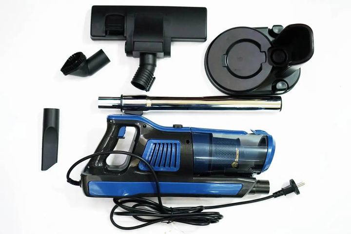 Пилосос обладнаний набірною металевою трубою та гнучким шлангом, що забезпечує комфорт у використанні та доступ до важкодоступних місць.