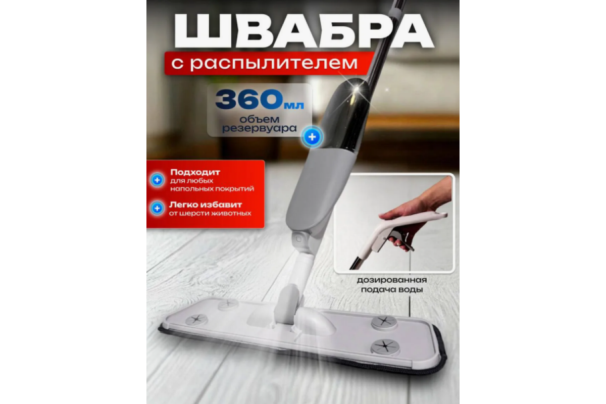 Сучасна швабра з вбудованим розпилювачем води — це ідеальне рішення для щоденного прибирання! Просто натисніть на ручку — і мікропомпа рівномірно розпилить воду на підлогу, дозволяючи миттєво прибрати пил, розводи, плями або шерсть.
