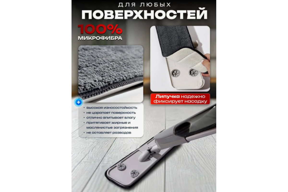 Насадка з мікрофібри легко захоплює бруд і не залишає подряпин, а завдяки поворотній головці 360° ви зможете дістатися до важкодоступних місць — під меблями, у кутах, біля плінтусів. Не потребує відра, ганчірок чи зайвих зусиль.
