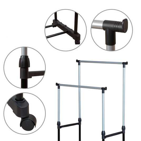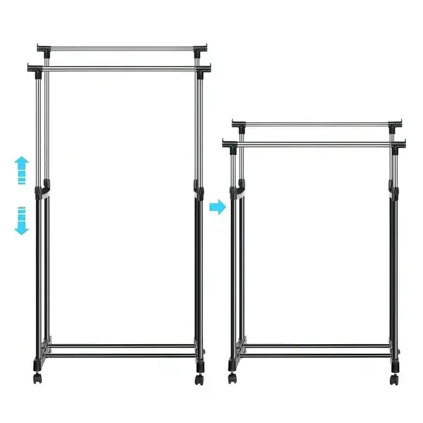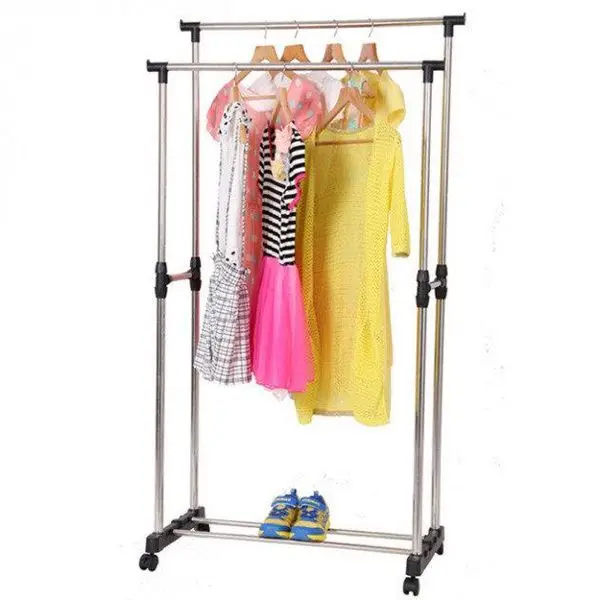 Великим плюсом стійки для одягу Double Pole Clother Hose є наявність невеликих коліщаток, завдяки яким Ви зможете пересунути стійку навіть повністю завішену одягом.