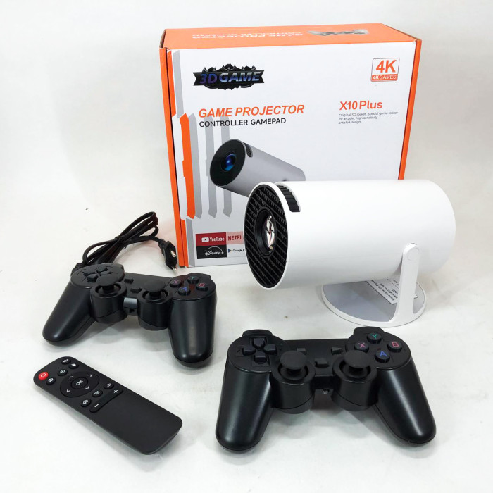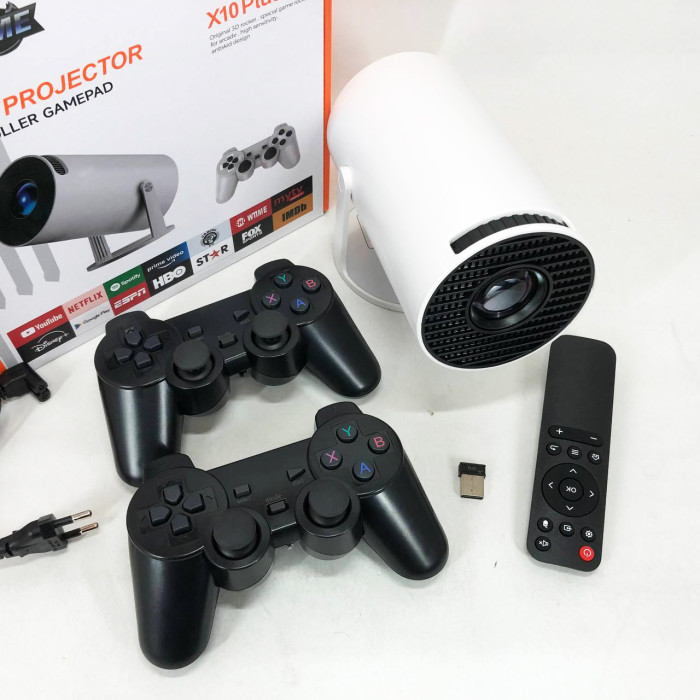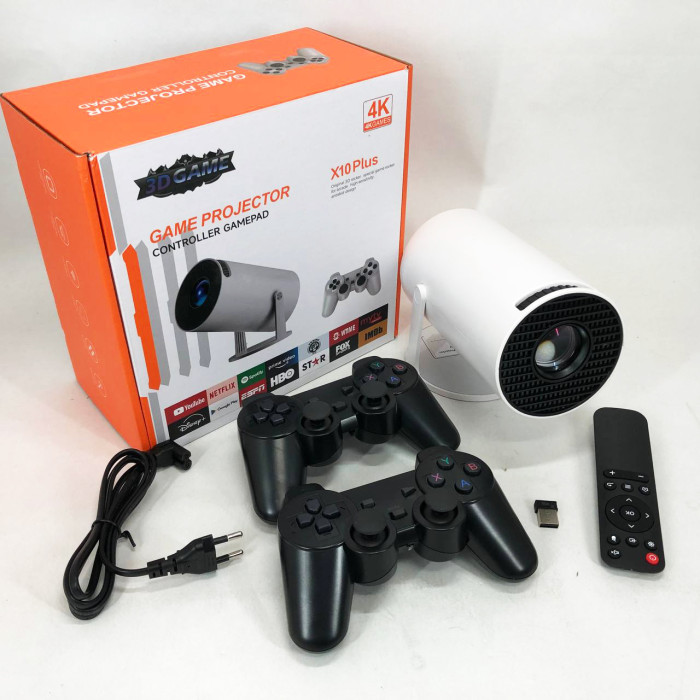 Пристрій підтримує ретро-ігри з платформ NES, Sega, SNES, PS1, PSP тощо, а в комплекті вже є 2 бездротових геймпади, що дозволяє одразу розпочати гру з другом або дитиною. Крім ігор, X10 Plus — повноцінний Android-проєктор: встановлюйте додатки з Google Play, дивіться YouTube, Netflix, Megogo або слухайте музику онлайн.